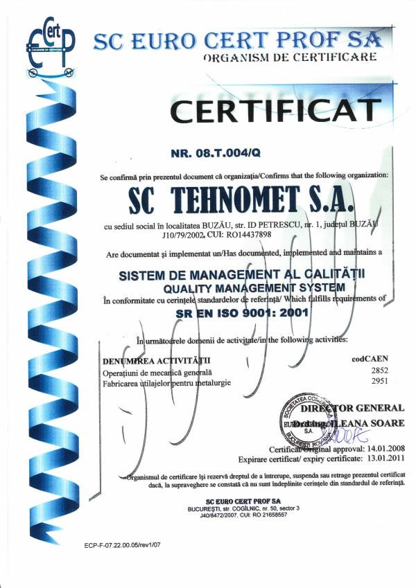 Va prezentam in cele ce urmeaza certificarile obtinute de firma noastra: